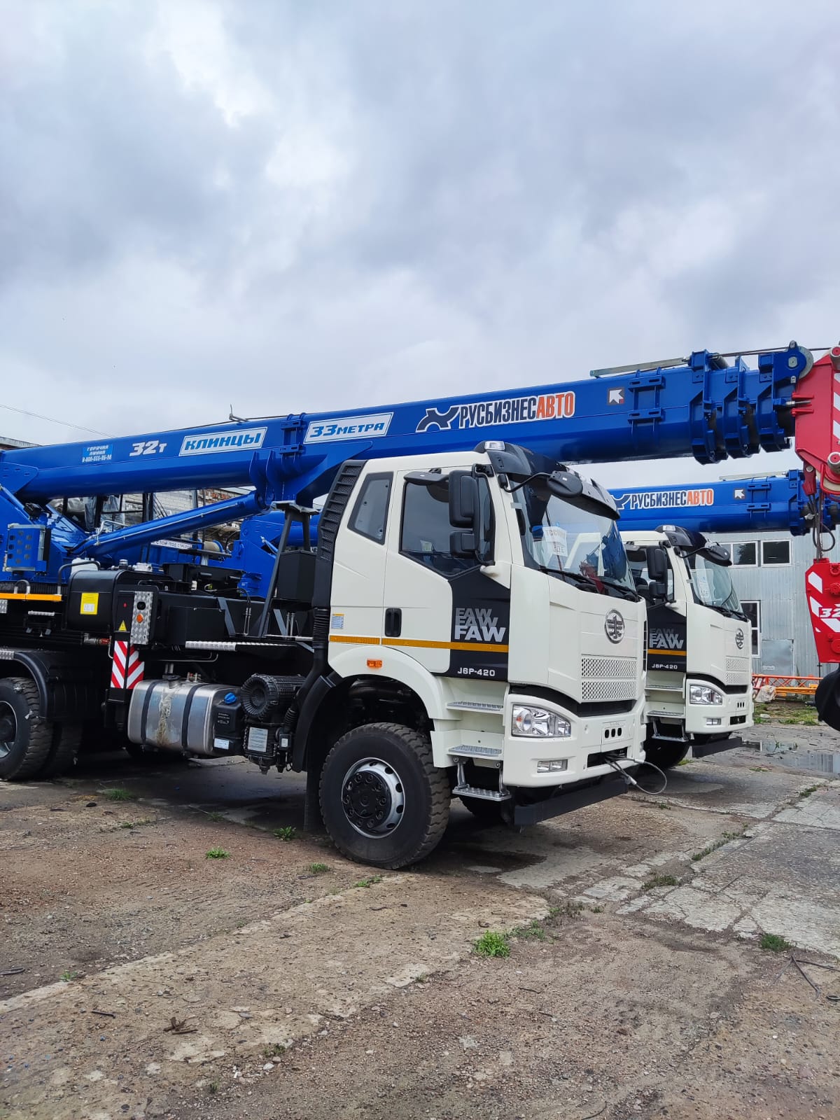 Грузоподъемность 32т, шасси  FAW-3250 (6х6) , стрела 33 м., в базовой комплектации противовес 1,5 т. (перевозится отдельно от крана), гарантия на кран 18 месяцев или 1000 м/ч