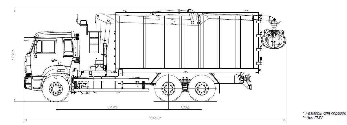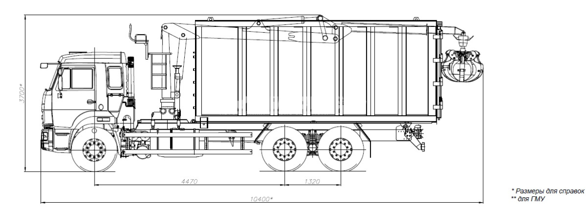 Технические характеристики КМУ Ломовоз КАМАЗ-65115-3094-48 (Евро-5), кузов 30 куб. (САТ), Майман-110S