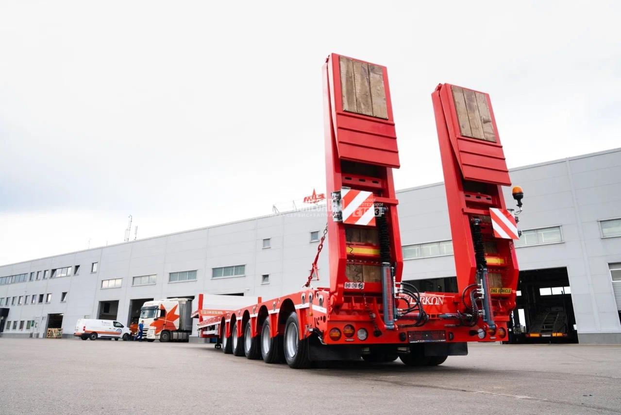 - Низкорамный трал TIRKON LWB5A - 5 осей Osman Kos грузоподъемность 12 тон - Тормозные система: Wabco 4S/3M, двухкамерные барабанные тормоза, действующие на все колеса с помощью S-образного кулачкового привода, двухканальная, электро- пневматическая, согласно UN ECE R13 - Пневмоподвеска с барабанными тормозами - Длина платформы погрузочная 11500 мм + 6000 мм - Габаритная длина в сложенном виде 15 994 мм - Раздвижной механизм с фиксацией раздвижения каждые 500 мм - Угол заезда на аппарели 10 градусов - 1-я ось подъемная - 4-ая и 5-ая подруливающие - Г/п 56 240 кг (по ЭПТС) - Г/п технически допустимая 63 000 кг - Собственная масса 16 760 кг - Ширина 2.550 мм (выдвижные уширители платформы с двух сторон + 250 мм, без настила) - Собственная гидростанция с работой от АКБ тягача (силовые провода в комплекте)